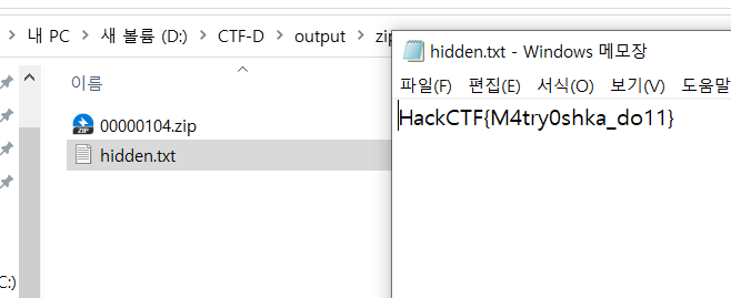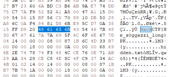 PK(압축파일 헤더)와 hidden.txt 를 발견할 수 있었다.